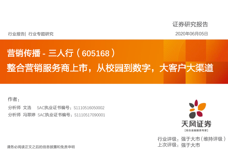 【天风证券】【20200605】三人行:整合营销服务商上市,从校园到数字,大客户大渠道-40页