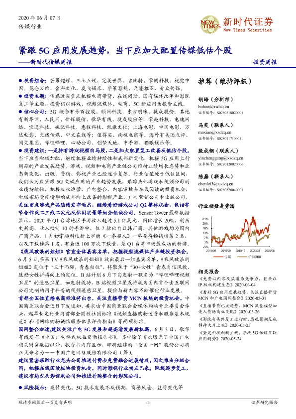 【新时代证券】【20200607】新时代传媒周报:紧跟5G应用发展趋势,当下应加大配置传媒低估个股-36页