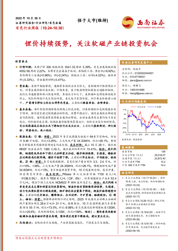 【西南证券】【20221030】有色行业周报:锂价持续强势,关注软磁产业链投资机会20221030-35页