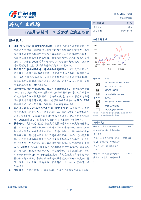 【广发证券】【20200609】游戏行业跟踪:行业增速提升,中国游戏出海正当时-27页