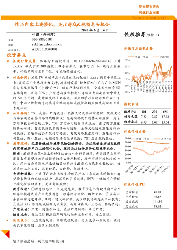 【广证恒生】【20200614】传媒行业周报:精品内容上线催化,关注游戏&视频龙头机会-15页