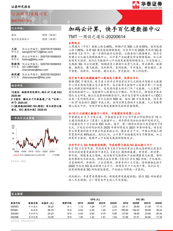 【华泰证券】【20200614】TMT一周谈之通信:加码云计算,快手百亿建数据中心-17页