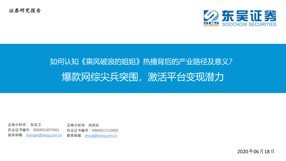 【东吴证券】【20200618】如何认知《乘风破浪的姐姐》热播背后的产业路径及意义?爆款网综尖兵突围,激活平台变现潜力-30页