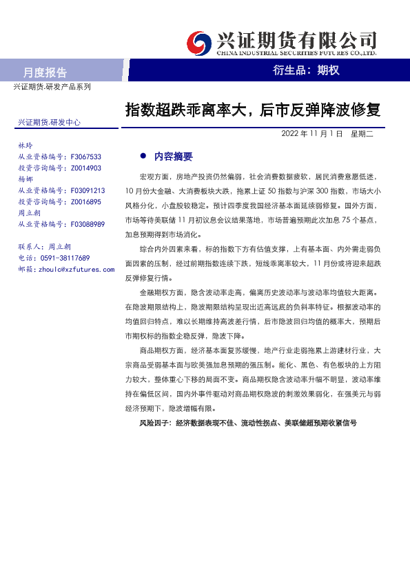 【兴证期货】【20221101】期权月度报告:指数超跌乖离率大,后市反弹降波修复-21页