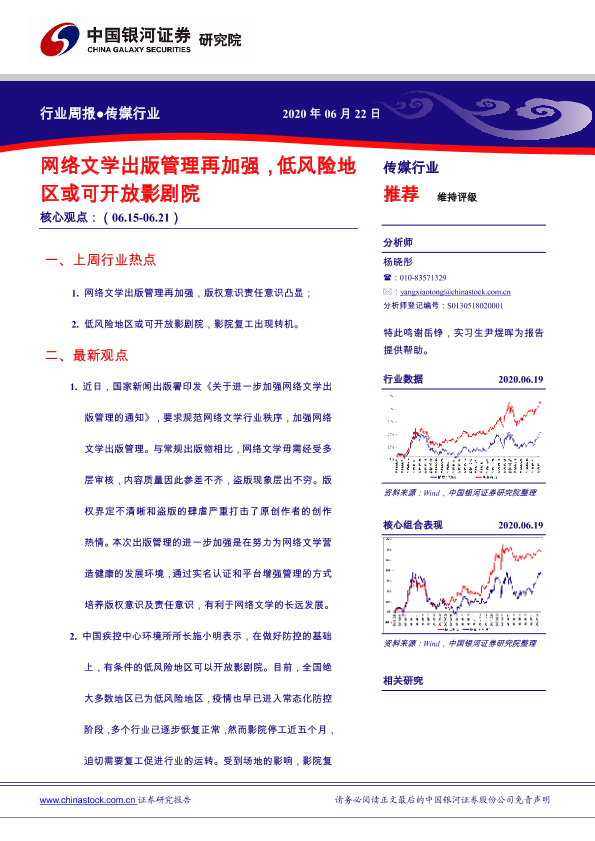 【银河证券】【20200622】20200622-中国银河-传媒行业周报:网络文学出版管理再加强,低风险地区或可开放影剧院-38页