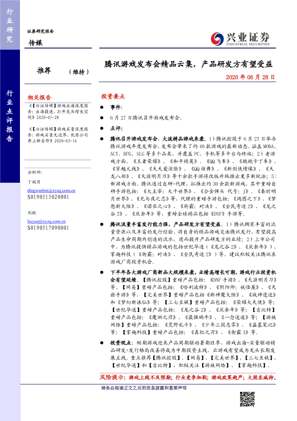 【兴业证券】【20200628】腾讯游戏发布会精品云集,产品研发方有望受益-2页