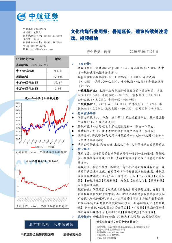 【中航证券】【20200629】20200629-中航证券-文化传媒行业周报:暑期延长,建议持续关注游戏、视频板块-7页