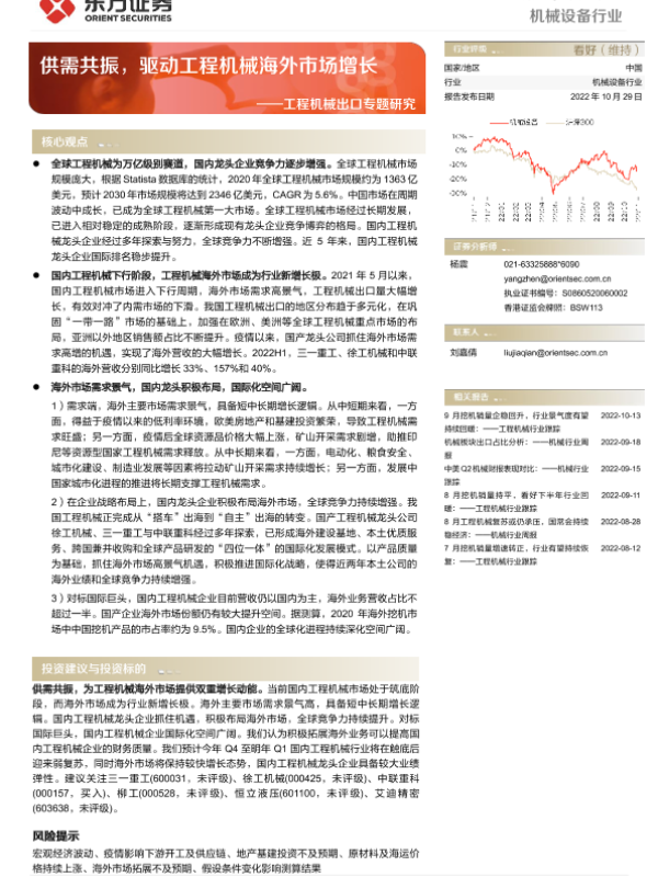 【东方证券】【20221029】机械设备行业工程机械出口专题研究:供需共振,驱动工程机械海外市场增长-27页