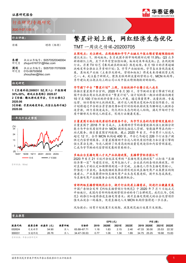 【华泰证券】【20200705】TMT一周谈之传媒:繁星计划上线,网红经济生态优化-12页