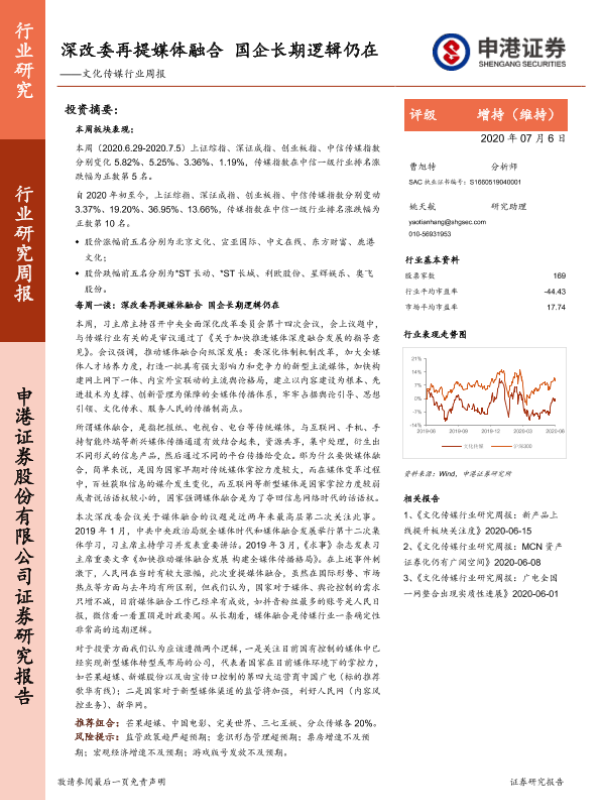 【申港证券】【20200706】20200706-申港证券-文化传媒行业周报:深改委再提媒体融合 国企长期逻辑仍在-18页