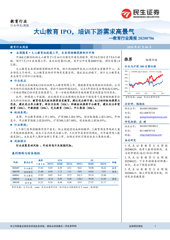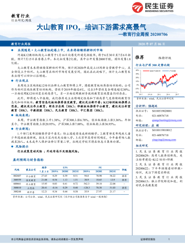 【民生证券】【20200706】20200706-民生证券-教育行业周报:大山教育IPO,培训下游需求高景气-12页