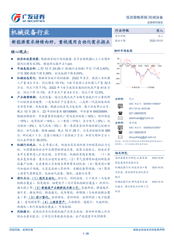 【广发证券】【20221031】机械设备行业投资策略周报:新能源需求持续向好,重视通用自动化需求拐点-25页