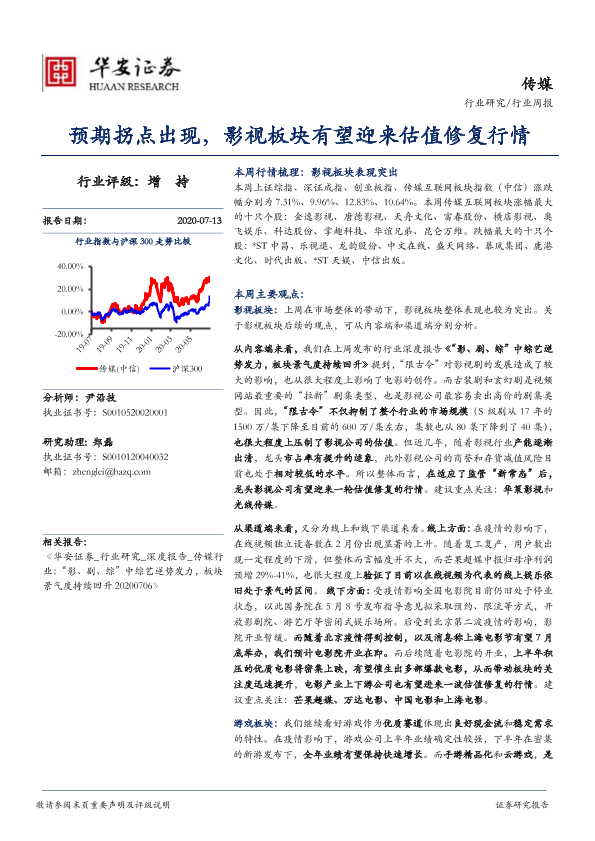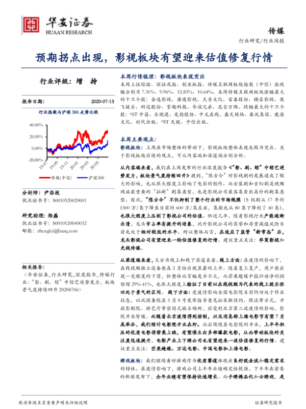 【华安证券】【20200713】20200713-华安证券-传媒行业周报:预期拐点出现,影视板块有望迎来估值修复行情-16页