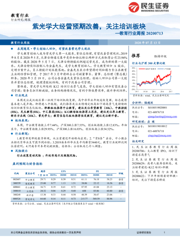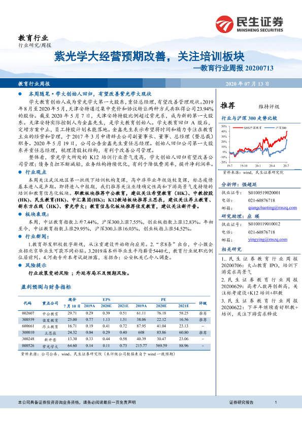 【民生证券】【20200713】20200713-民生证券-教育行业周报:紫光学大经营预期改善,关注培训板块-11页