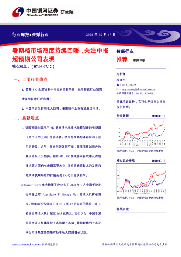 【银河证券】【20200713】20200713-中国银河-传媒行业周报:暑期档市场热度持续回暖,关注中报超预期公司表现-42页