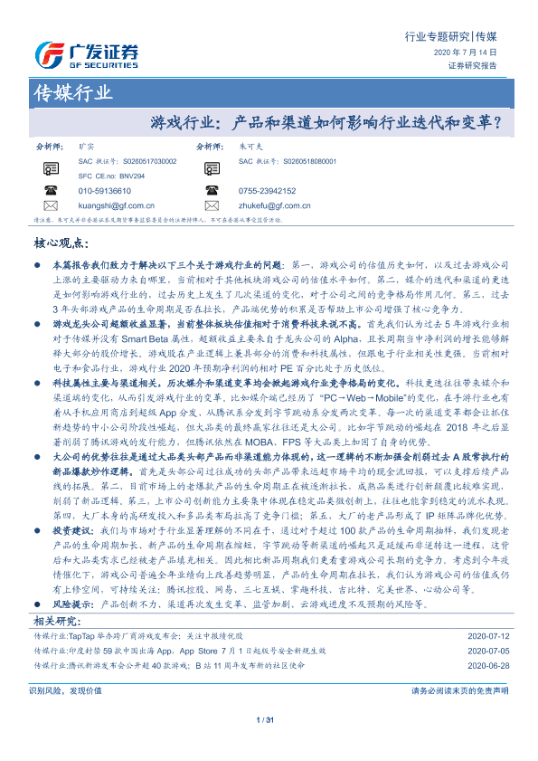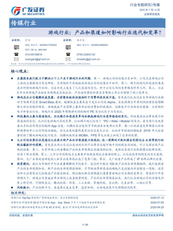 【广发证券】【20200714】游戏行业:产品和渠道如何影响行业迭代和变革?-31页