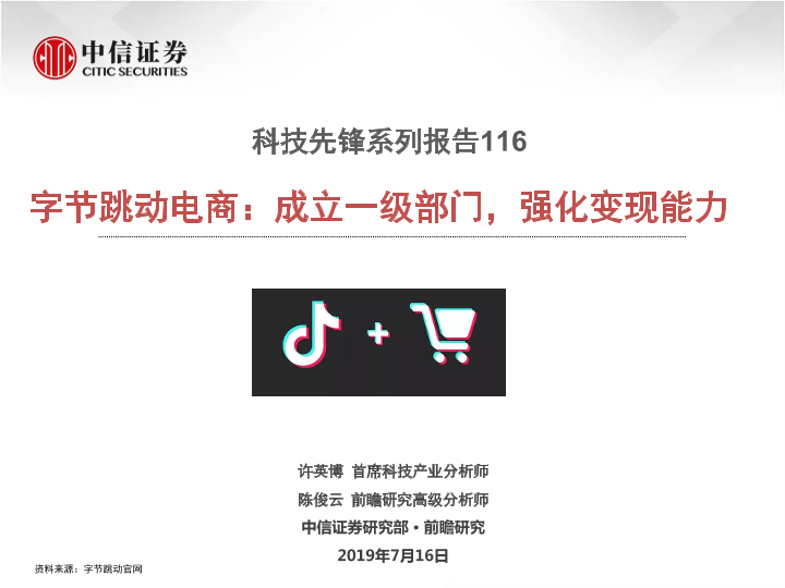 【中信证券】【20200716】科技先锋系列报告116:字节跳动电商:成立一级部门,强化变现能力-14页