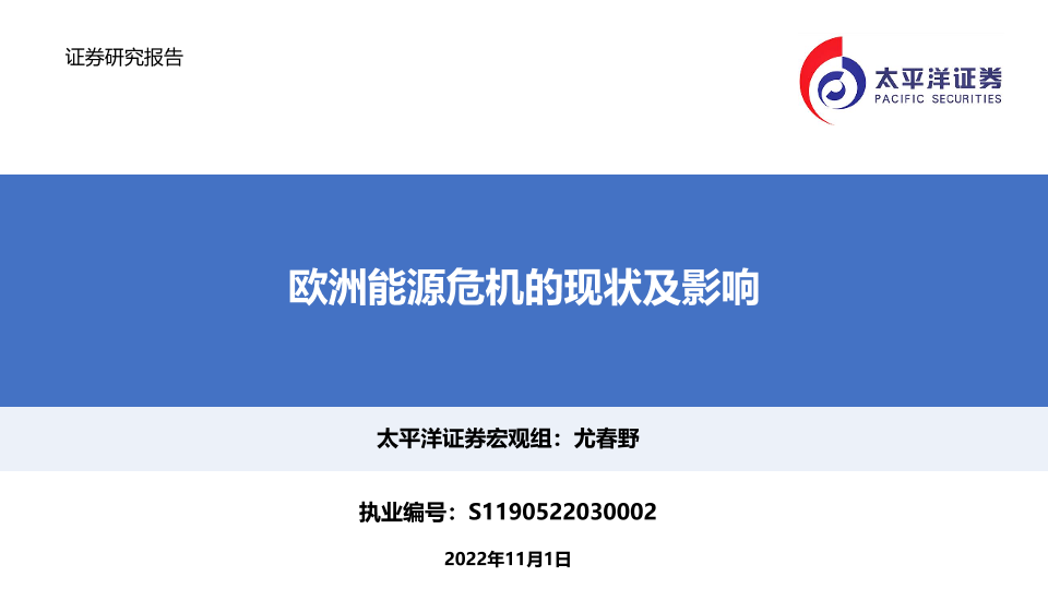 【太平洋证券】【20221101】欧洲能源危机的现状及影响-22页