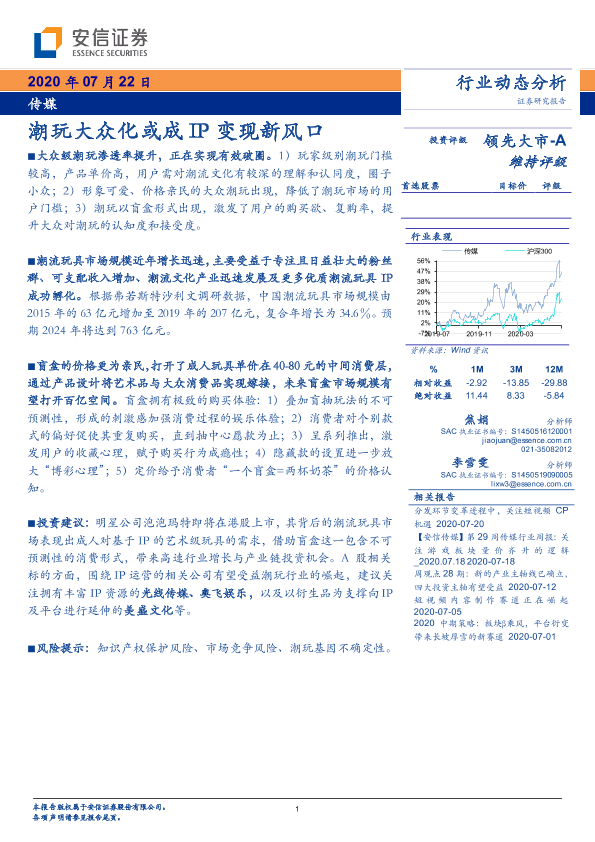 【安信证券】【20200722】潮玩大众化或成IP变现新风口-10页