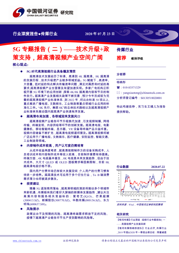 【银河证券】【20200723】传媒行业:5G专题报告(二):技术升级+政策支持,超高清视频产业空间广阔-58页