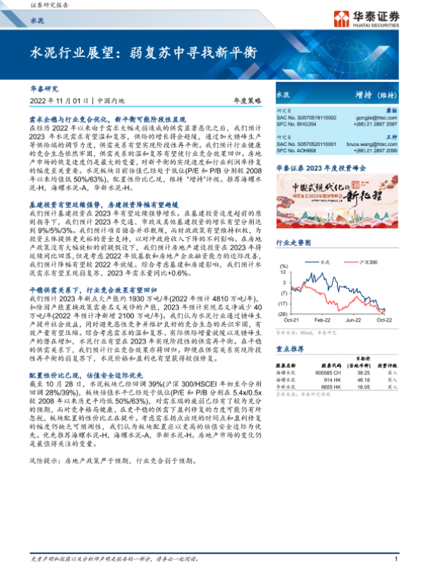 【华泰证券】【20221101】水泥行业年度策略:水泥行业展望,弱复苏中寻找新平衡-21页