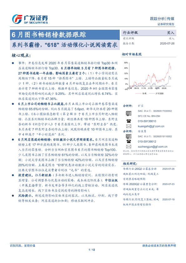 【广发证券】【20200726】6月图书畅销榜数据跟踪-系列书霸榜,“618”活动催化小说阅读需求-12页