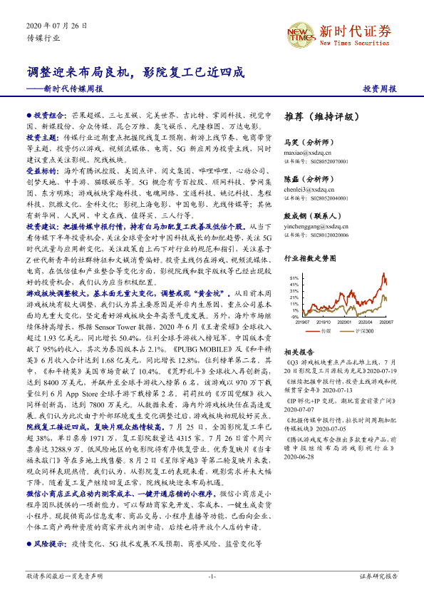 【新时代证券】【20200726】新时代传媒周报:调整迎来布局良机,影院复工已近四成-36页