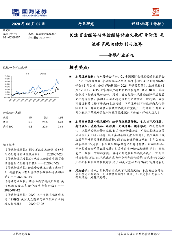 【国海证券】【20200802】20200802-国海证券-传媒行业周报:关注盲盒经济与体验经济背后文化符号价值 关注字节跳动的红利与边界-18页