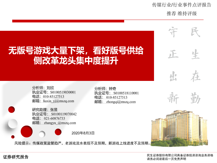 【民生证券】【20200803】无版号游戏大量下架,看好版号供给侧改革龙头集中度提升-6页