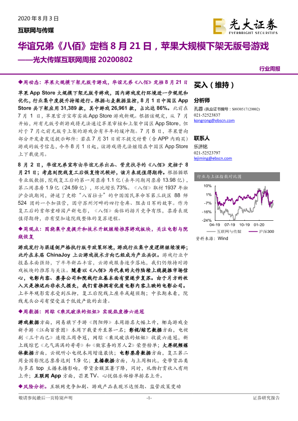 【光大证券】【20200803】光大传媒互联网周报:华谊兄弟《八佰》定档8月21日,苹果大规模下架无版号游戏-12页
