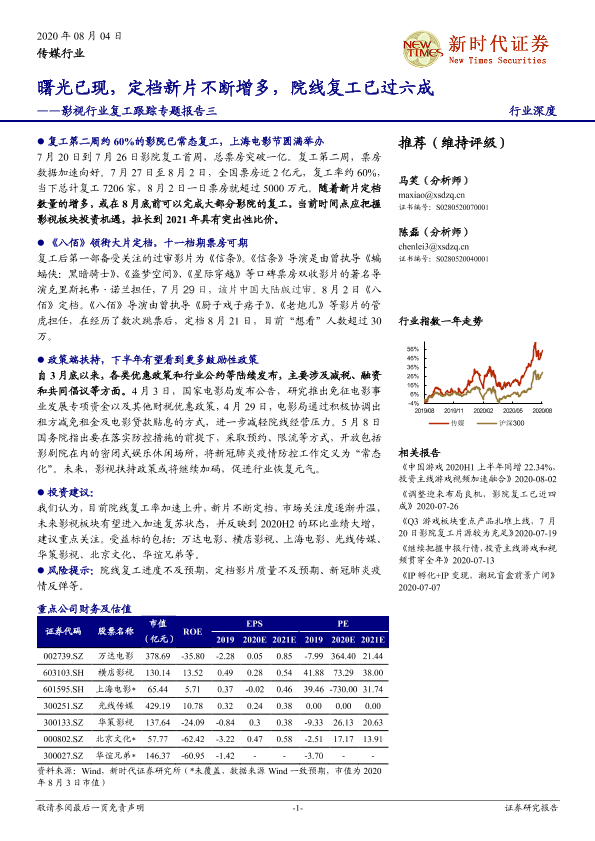 【新时代证券】【20200804】新时代证券-影视行业复工跟踪专题报告三:曙光已现,定档新片不断增多,院线复工已过六成-12页