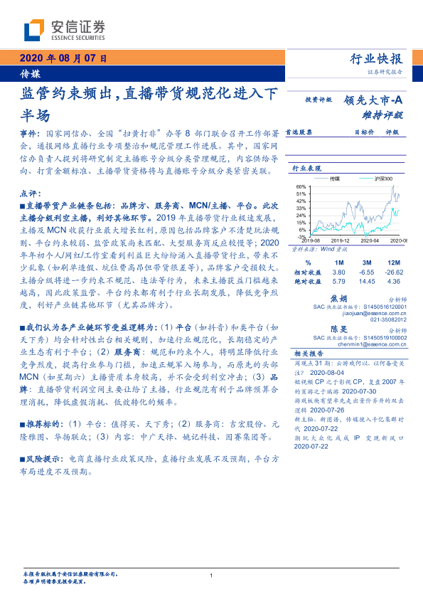 【安信证券】【20200807】监管约束频出,直播带货规范化进入下半场-3页