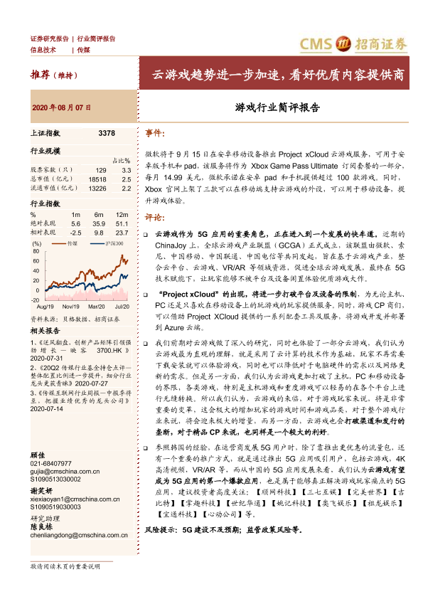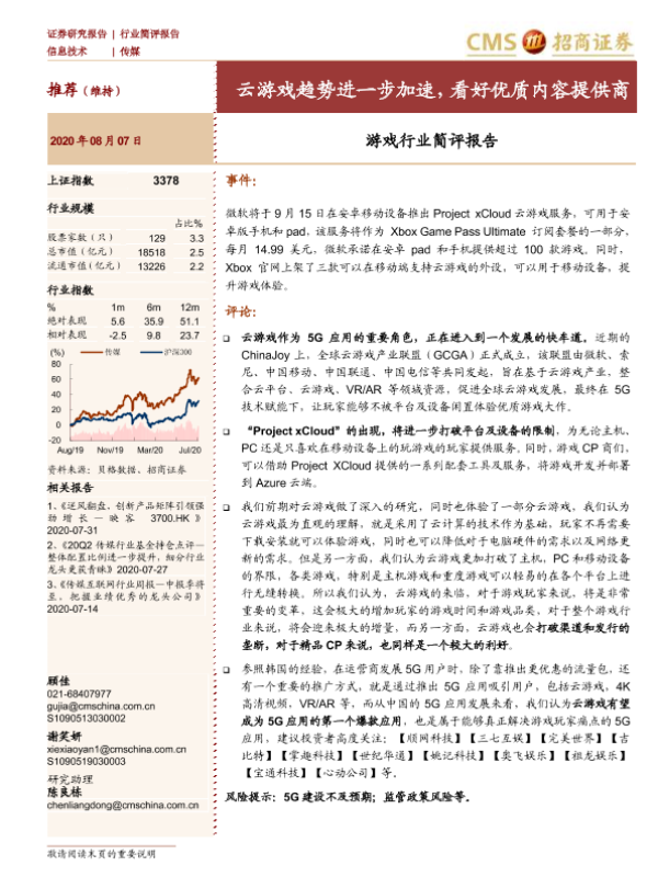 【海通证券】【20200807】游戏行业简评报告:云游戏趋势进一步加速,看好优质内容提供商-2页