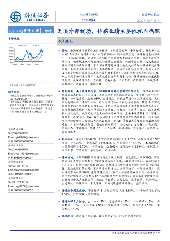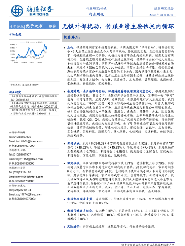 【海通证券】【20200809】20200809-海通证券-传媒行业周报:无惧外部扰动,传媒业绩主要依托内循环-10页