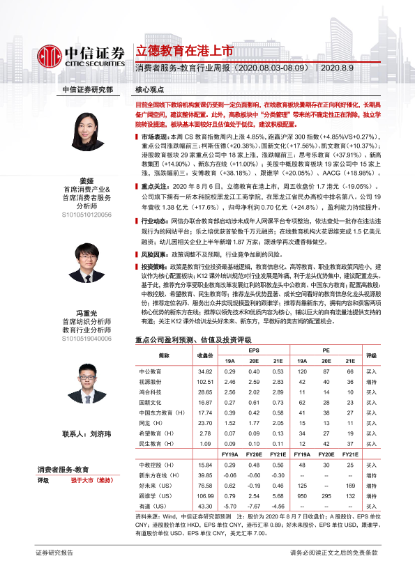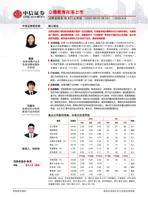 【中信证券】【20200809】消费者服务-教育行业周报:立德教育在港上市-11页