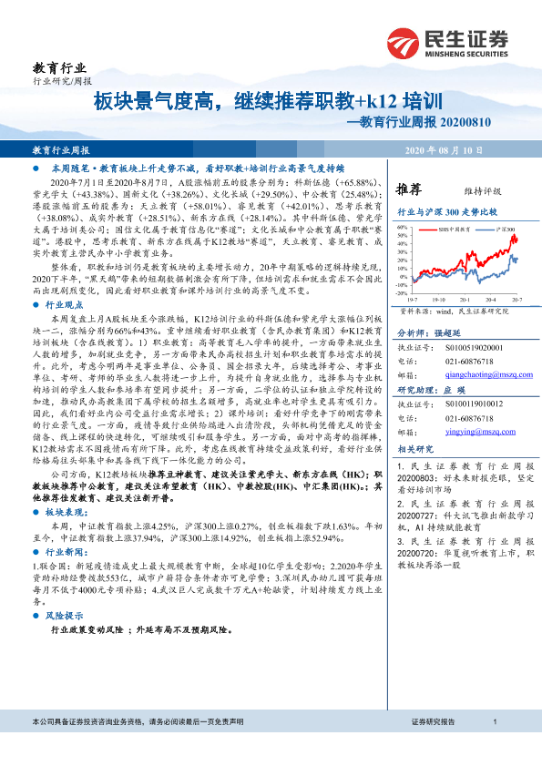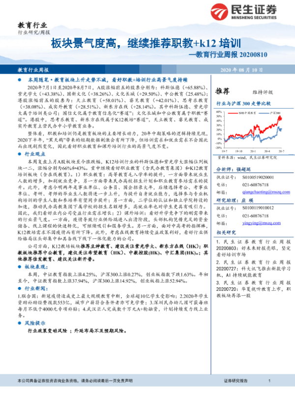 【民生证券】【20200810】20200810-民生证券-教育行业周报:板块景气度高,继续推荐职教+k12培训-12页