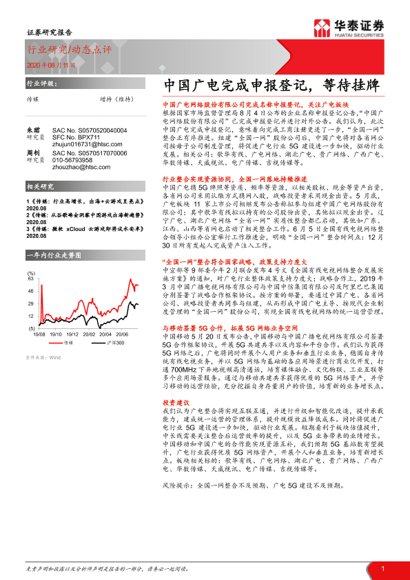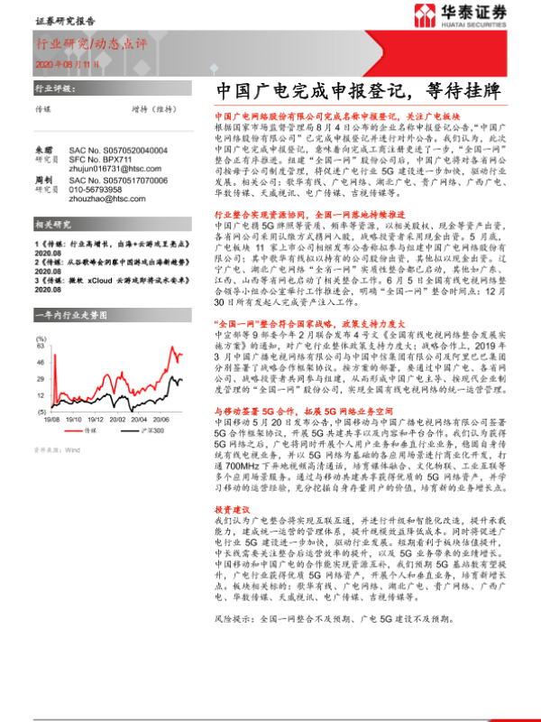 【华泰证券】【20200811】传媒:中国广电完成申报登记,等待挂牌-5页