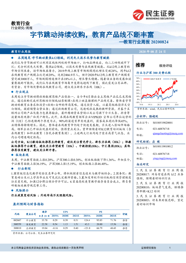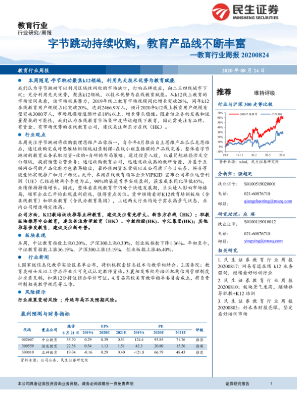 【民生证券】【20200824】20200824-民生证券-教育行业周报:字节跳动持续收购,教育产品线不断丰富-11页