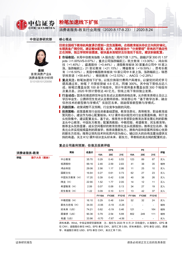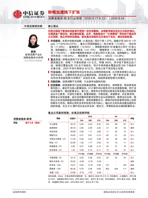 【中信证券】【20200824】消费者服务-教育行业周报:粉笔加速线下扩张-12页