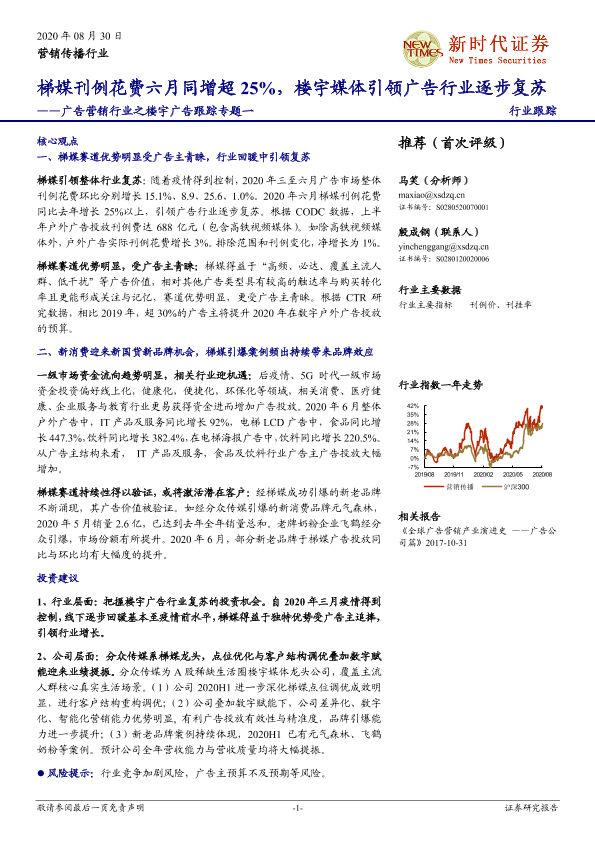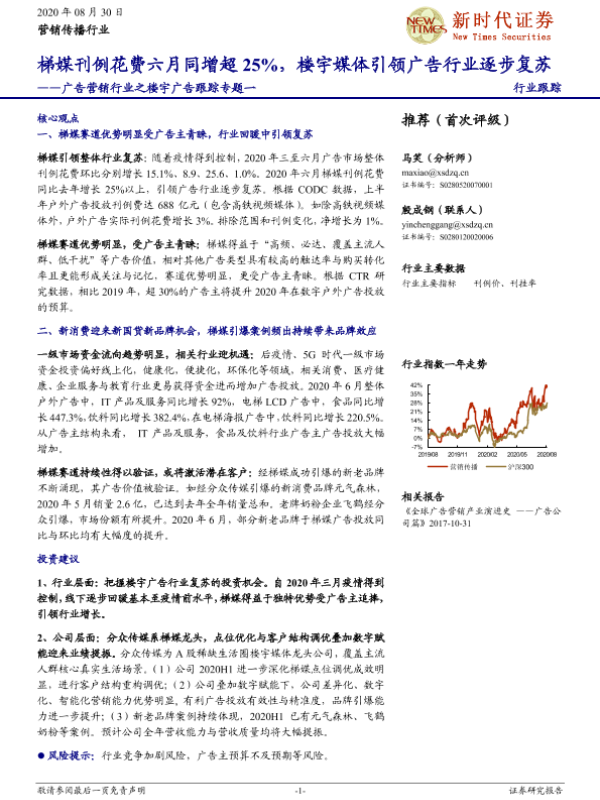 【新时代证券】【20200830】广告营销行业之楼宇广告跟踪专题一:梯媒刊例花费六月同增超25%,楼宇媒体引领广告行业逐步复苏-13页