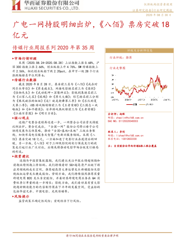 【华西证券】【20200830】20200830-华西证券-传媒行业周报系列2020年第35周:广电一网持股明细出炉,《八佰》票房突破18亿元-15页