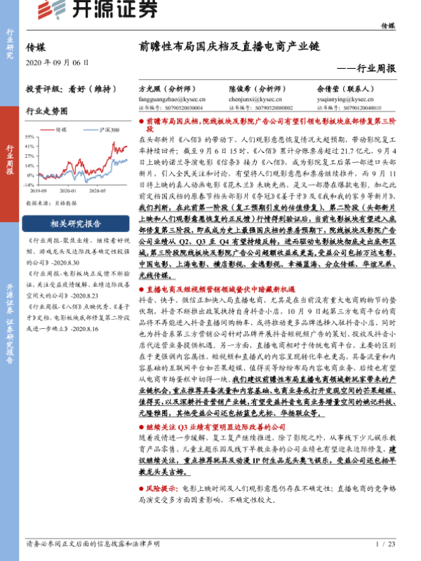 【开源证券】【20200906】前瞻性布局国庆档及直播电商产业链-23页