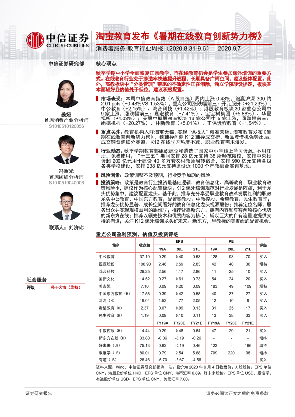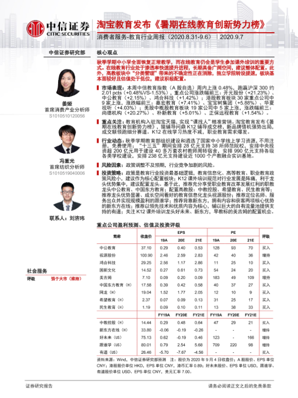 【中信证券】【20200907】20200907-中信证券-消费者服务-教育行业周报:淘宝教育发布《暑期在线教育创新势力榜》-12页