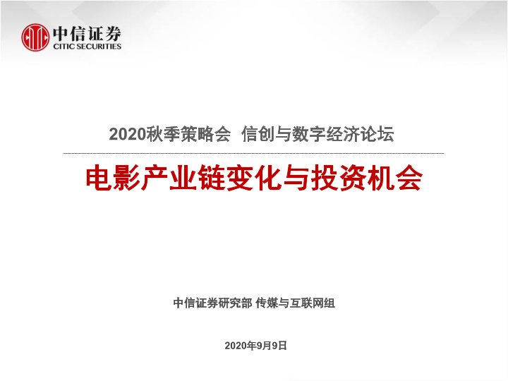 【中信证券】【20200909】2020秋季策略会 信创与数字经济论坛:电影产业链变化与投资机会-30页