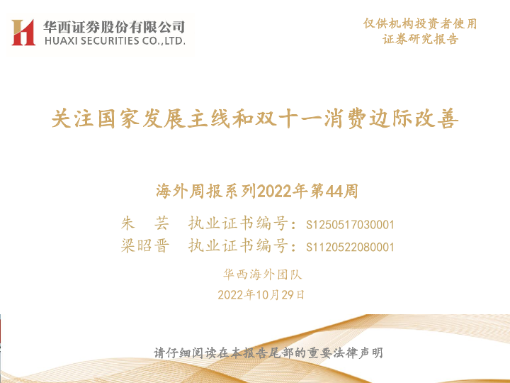 【华西证券】【20221029】海外周报系列2022年第44周:关注国家发展主线和双十一消费边际改善-47页