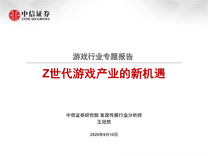 Z世代 中信证券 传媒分析 新机遇 游戏行业