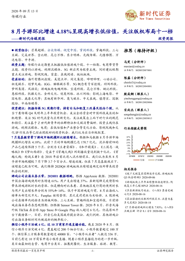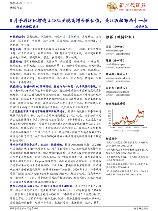 【新时代证券】【20200913】新时代传媒周报:8月手游环比增速4.18%呈现高增长低估值,关注版权布局十一档-36页