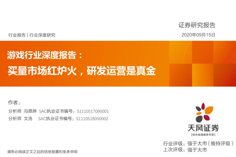 【天风证券】【20200915】游戏行业深度报告:买量市场红炉火,研发运营是真金-36页