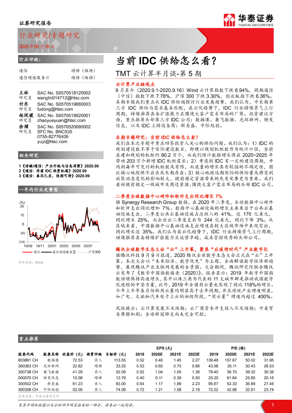 【华泰证券】【20200916】20200916-华泰证券-TMT云计算半月谈-第5期:当前IDC供给怎么看?-14页