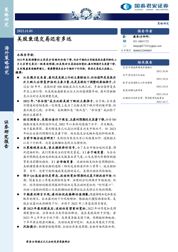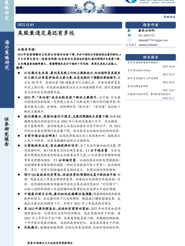【国泰君安证券】【20221101】美股衰退交易还有多远-22页
